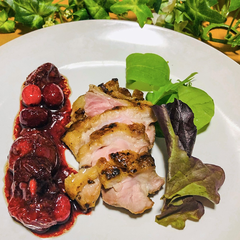 鴨のソテーブルーベリーソースレシピ京鴨山城農産株式会社。