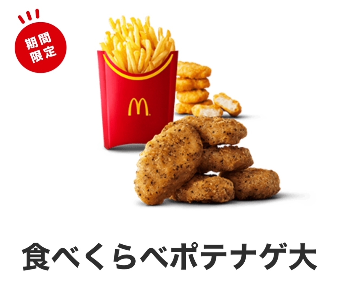マクドナルド期間限定「チキンマックナゲット」入り30%OFFの「ポテナゲ大」と35%OFFの「ポテナゲ特大」販売。