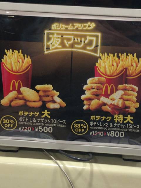 マクドナルド ポテト250円 8 21~9 1 ・ナゲット15ピース490円 8 29まで夜マック「ポテナゲ」と、どちらがお得?マネーの達人。
