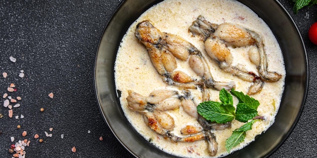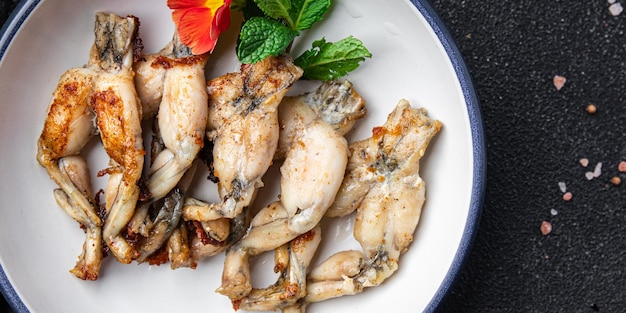 カエルの足揚げ肉料理フランス料理食事テーブルの上のスナックコピースペースの食べ物背景素朴なトップビュー — ストック写真 © a-lesa-lesa648738294。