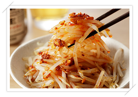 レンジで手軽に!大豆もやしのナムルのレシピ 作り方:白ごはん.com。