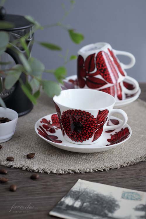 グスタフスベリ レッド アスター コーヒーカップ & ソーサー 復刻版北欧ヴィンテージ風 磁器 160ml おしゃれ 食器 ギフトPAYSAGE - お気に入りの食器たち北欧とヨーロッパの名品。