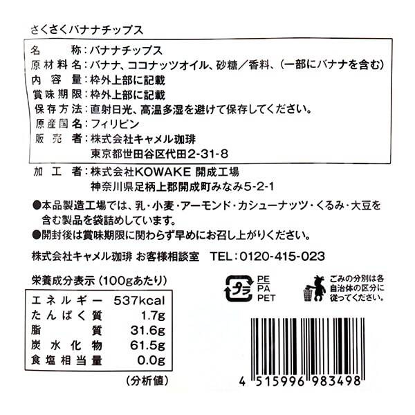 さくさくバナナチップス 220g - カルディコーヒーファーム オンラインストア。