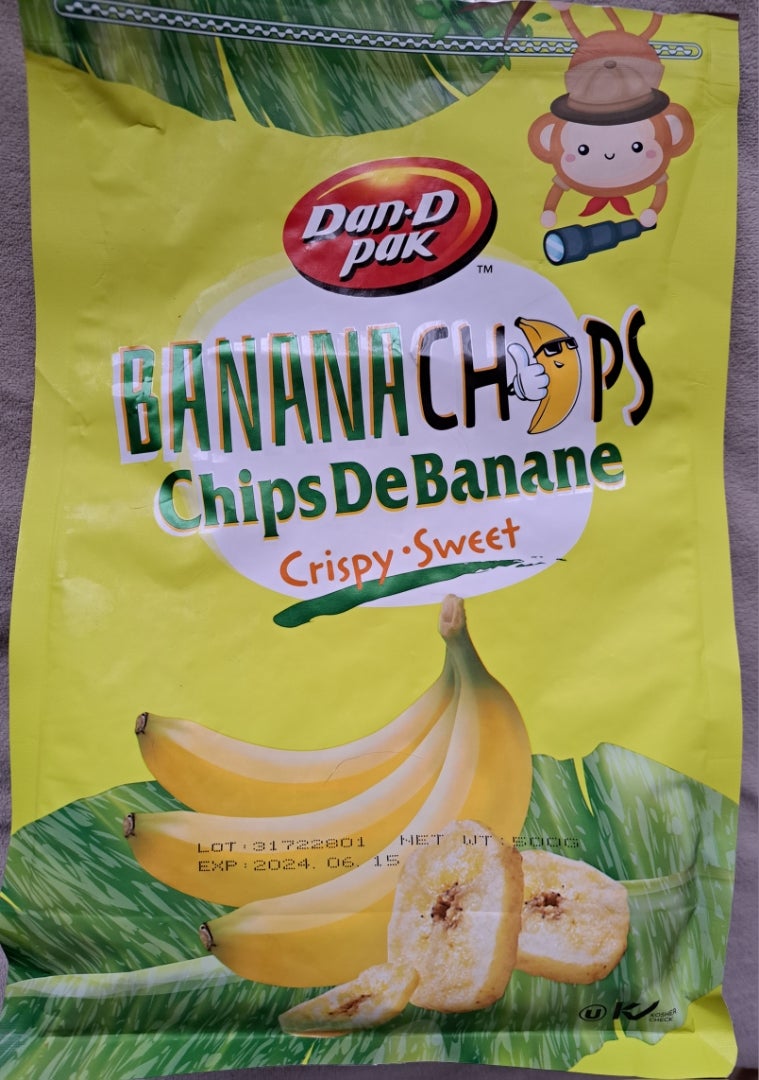 Dan·d·pak バナナチップス - 甘くてカリカリの乾燥バナナ - 150g。