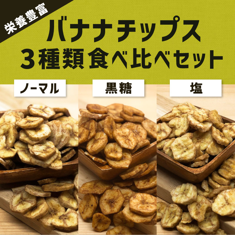 バナナチップス 3種類食べ比べセット プレーン 黒糖 塩 各110g 合計330gナッツ&ドライフルーツの通販 クノップ。