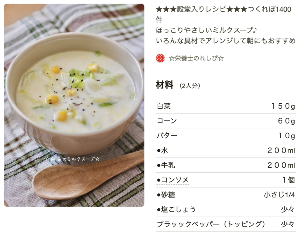 ほうれん草スープレシピ 人気1位・殿堂入り クックパッドつくれぽ1000越え夕食のおかず.com。