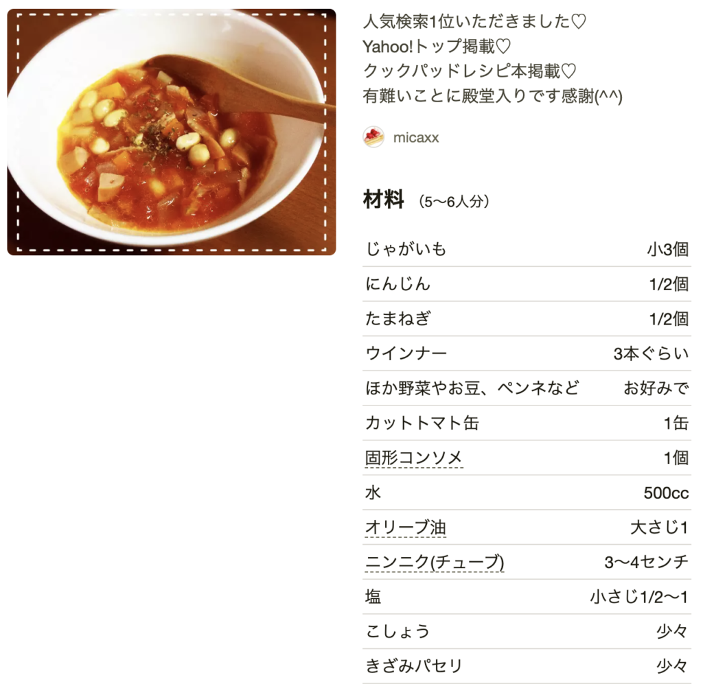野菜スープ レシピ つくれぽ最新人気レシピランキングTOP10!殿堂入りレシピを中心にご紹介レシピランキングネット。