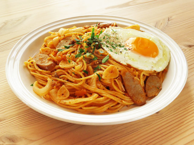 「残ったミートソースをリメイク♪ おいしいミートナポリタン」。