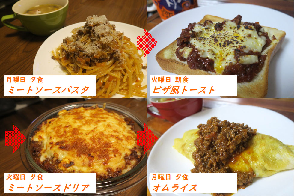 作り置き、リメイク料理 ミートソース三段活用宮永千恵。