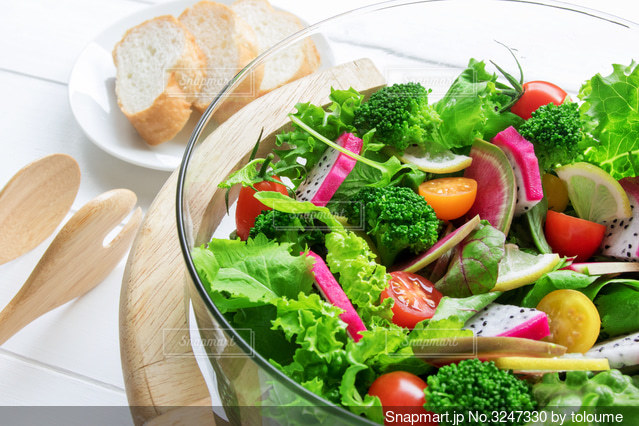 サラダボールに盛り付けした野菜サラダの写真・画像素材-Snapmart スナップマート。