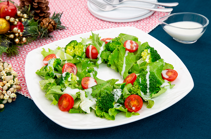 簡単な盛り付けで食卓が華やかに!「クリスマスに作ろう リースサラダ」株式会社サラダクラブのプレスリリース。