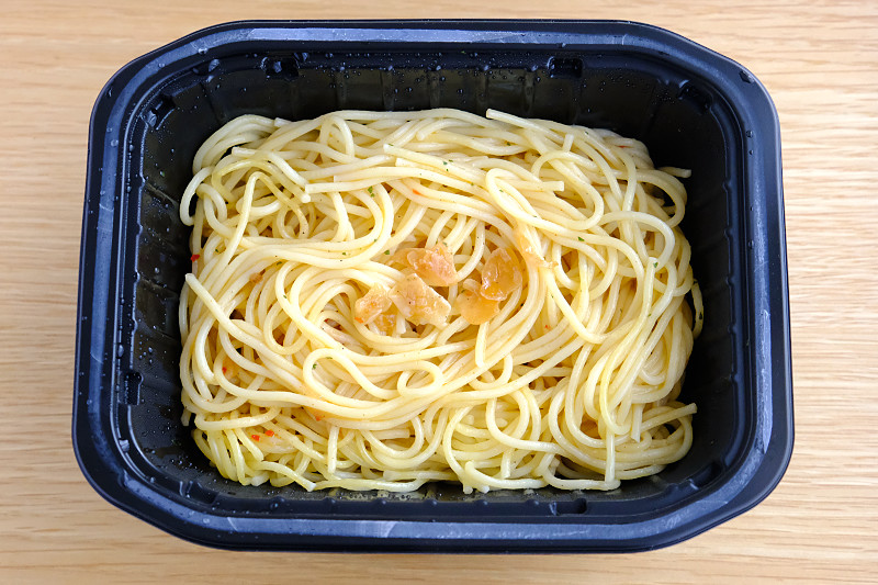 セブンイレブンの冷凍食品。スパゲティ ペペロンチーノ セブンプレミアムお昼ご飯にいただきます。おうち時間 ステイホーム 日常的な食生活。2021年3月撮影 日本の Stock フォトAdobe Stock。