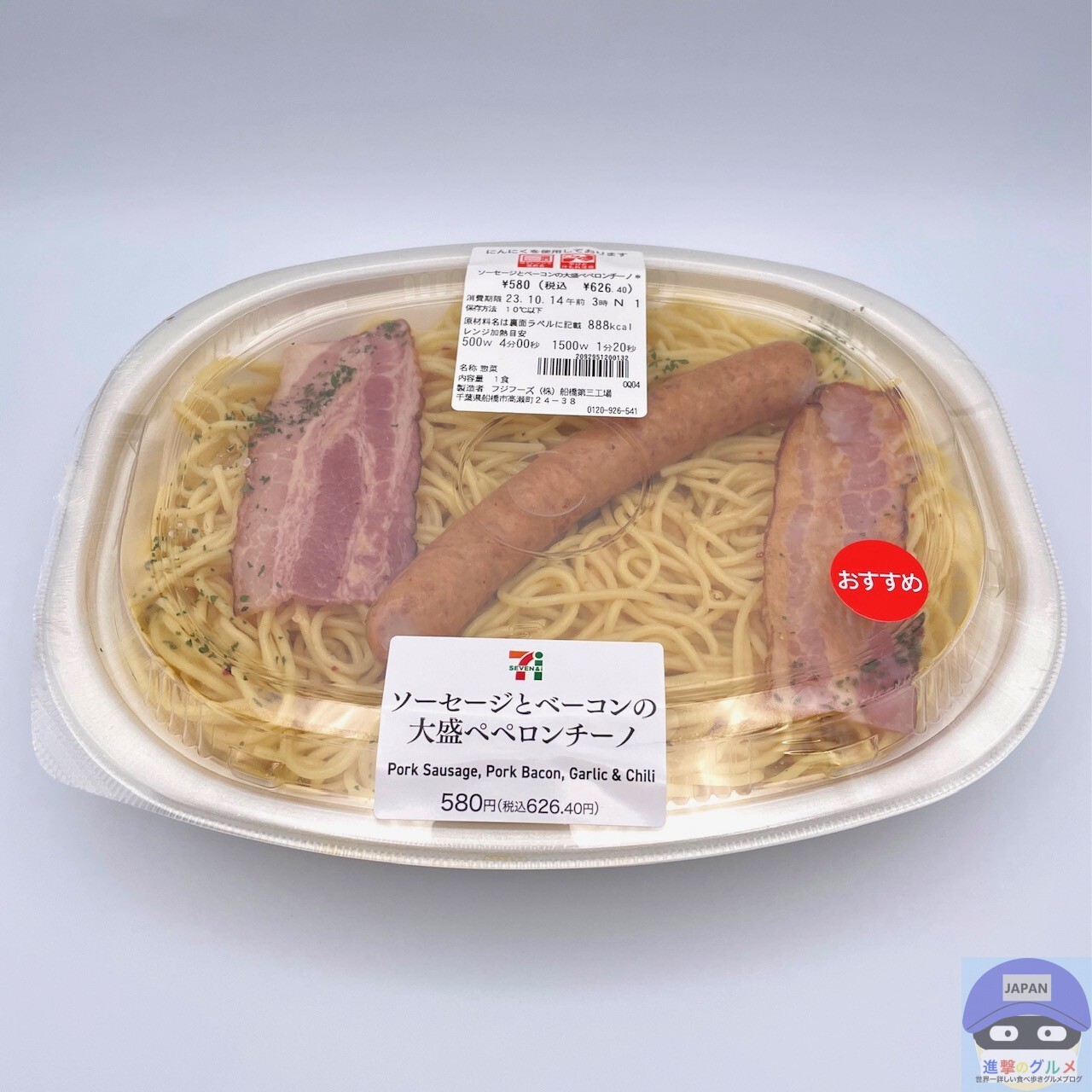 セブン『大盛!ベーコンとソーセージのペペロンチーノ』食べてみた│とりぷるセブン。