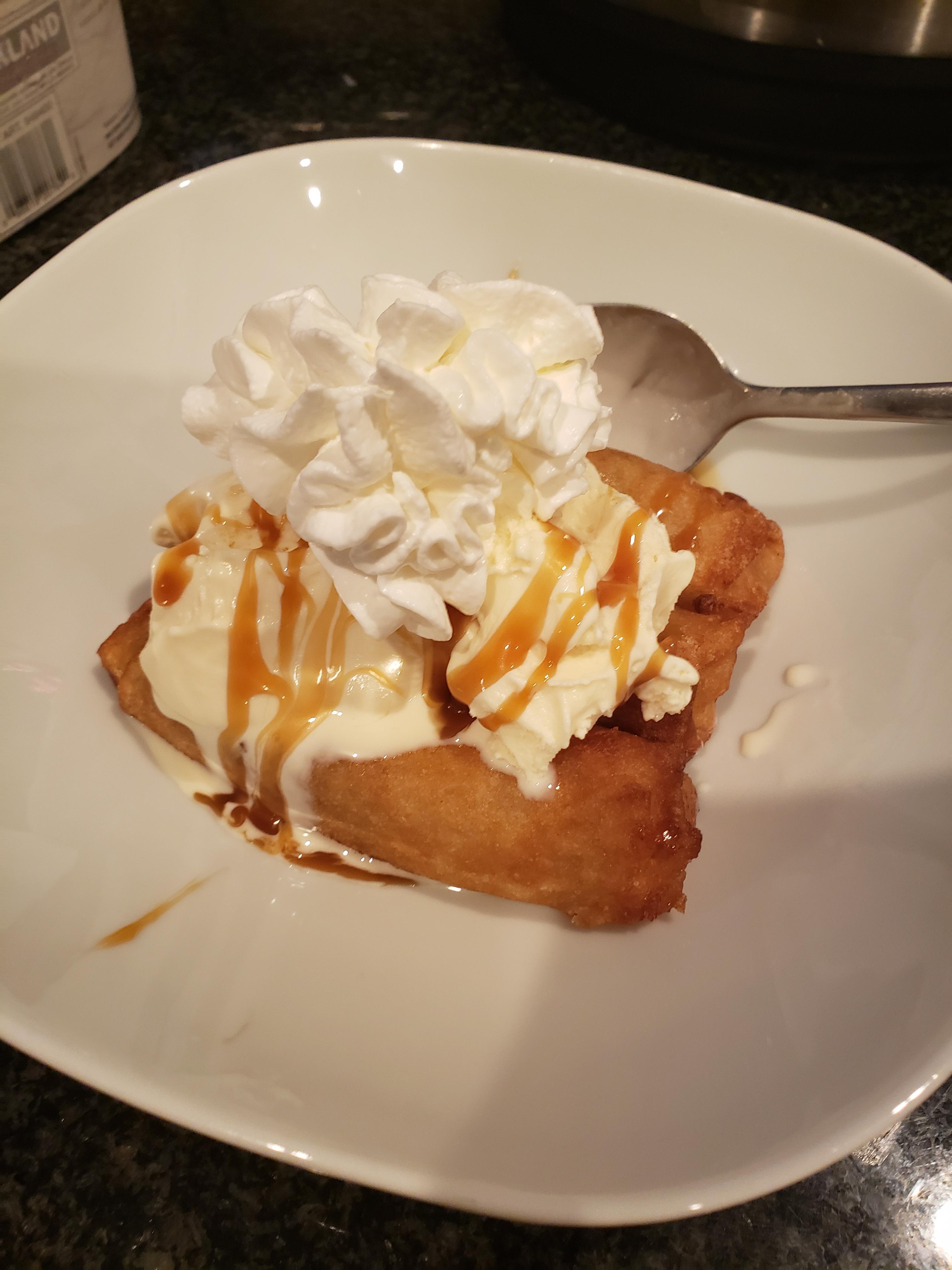 コストコのアップルパイ春巻き、キャラメルパック付き、コストコのバニラアイスクリーム、コストコのホイップクリーム。 : r Costco。