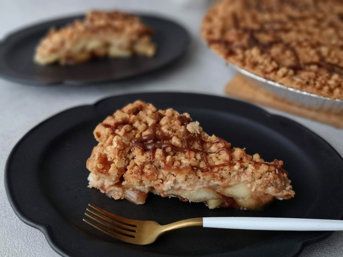 字幕付き コストコのデザートの新商品!キャラメルアップルパイの紹介です!スパイシーで甘酸っぱいリンゴとザクザクな食感のクランブルがクセになる、食べた事ないアメリカンなアップルパイでした。