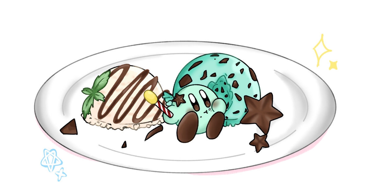 カービィを食べたい チョコミントカラーカービィ♡ - Leuのイラスト - pixiv。