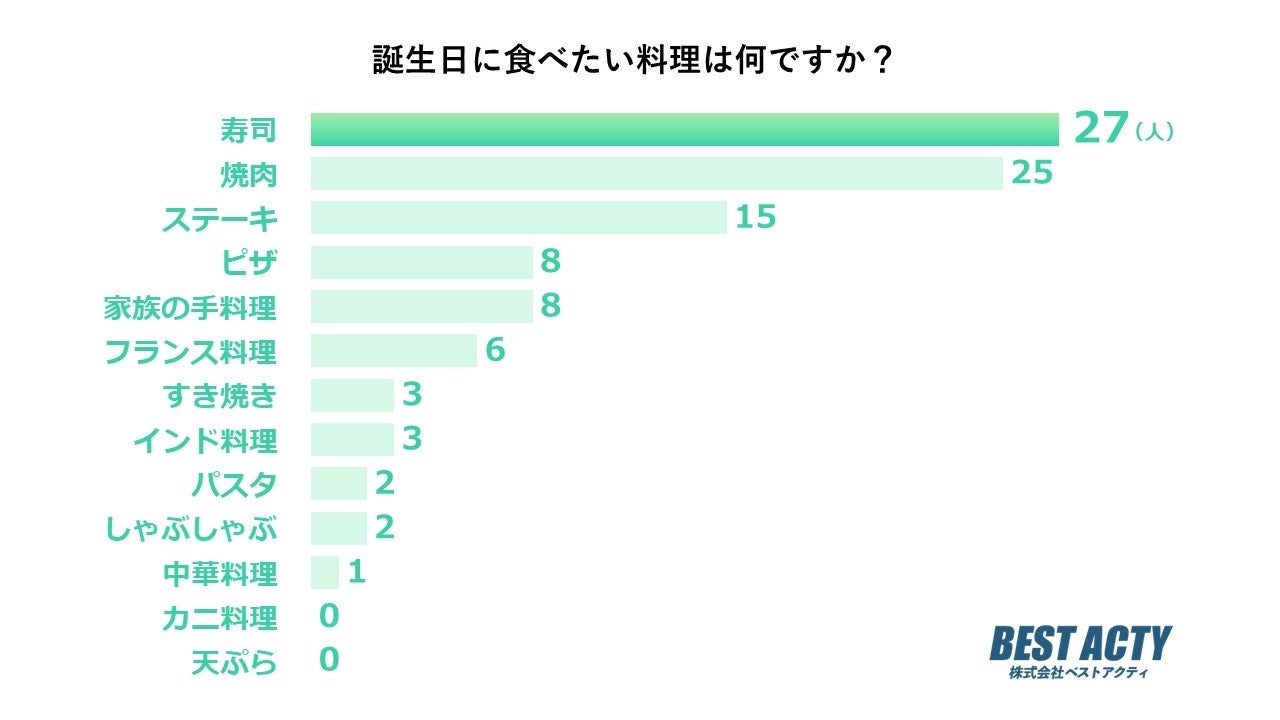 アンケート調査 誕生日に食べたい料理は?老若男女問わず人気の「寿司」が1位株式会社ベストアクティのプレスリリース。
