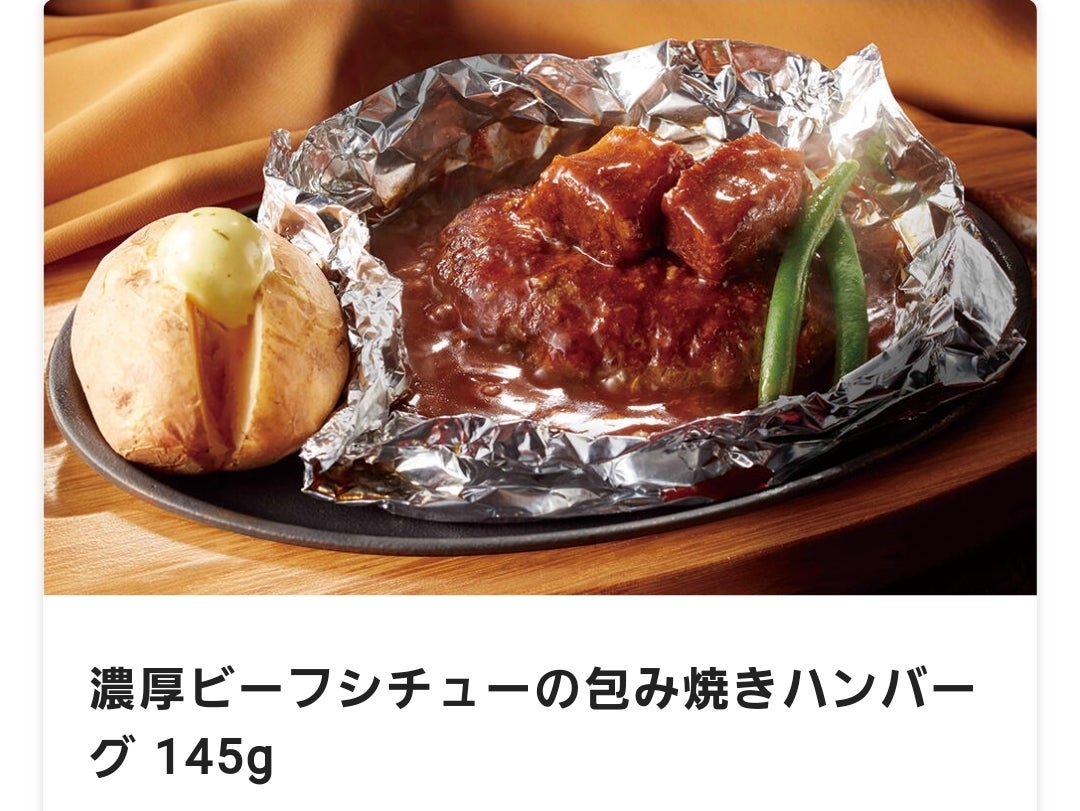 濃厚ビーフシチューの包み焼きハンバーグ145gメニューココス ファミリーレストランCOCO'S。