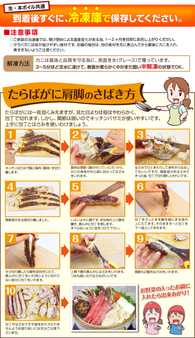 特大本タラバかにしゃぶを美味しくお召し上がりいただくために 解凍方法・食べ方レシピ北海道へ行こう。