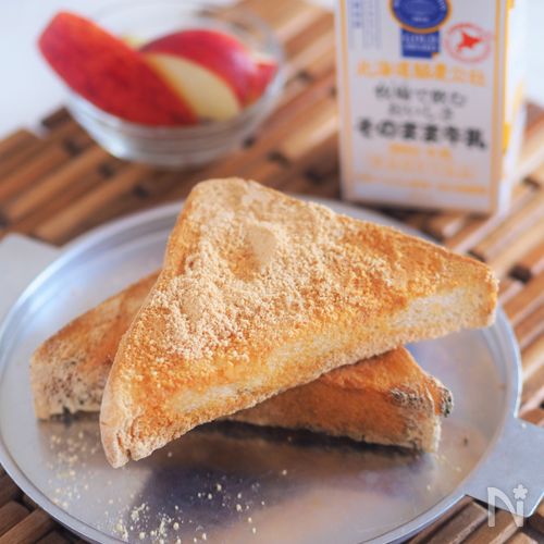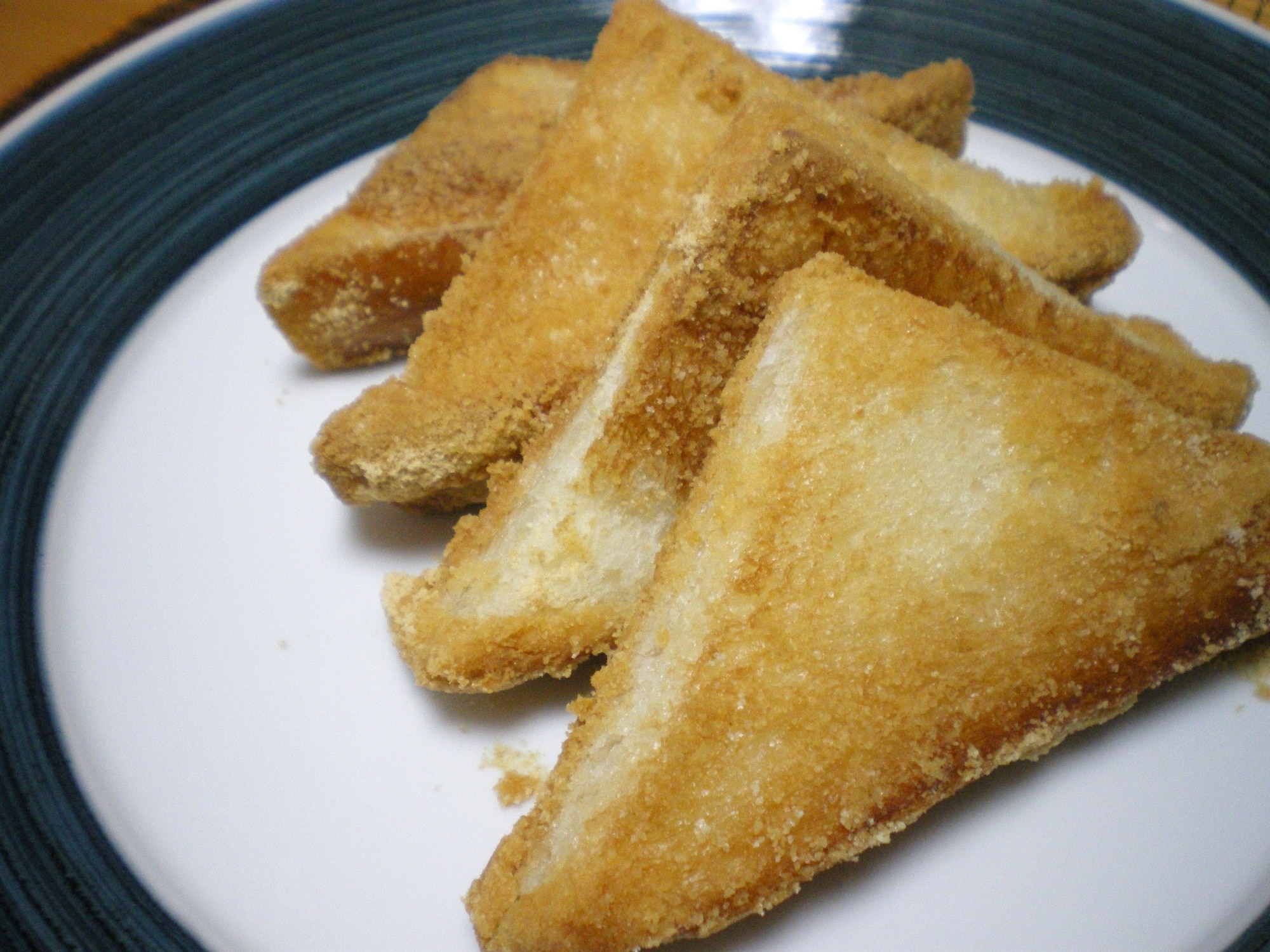 銀座に志かわオススメ食パンアレンジ💐 ○揚げパン風トースト 家事ヤロウから材料 バター、砂糖、きな粉、パン粉 バター、砂糖、きな粉を混ぜパン に満遍なく塗り、トーストで4分焼きます。その間にパン粉、砂糖を混ぜておきます。取り出した食パンに先程混ぜてお。