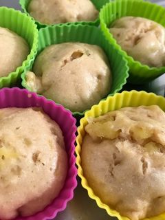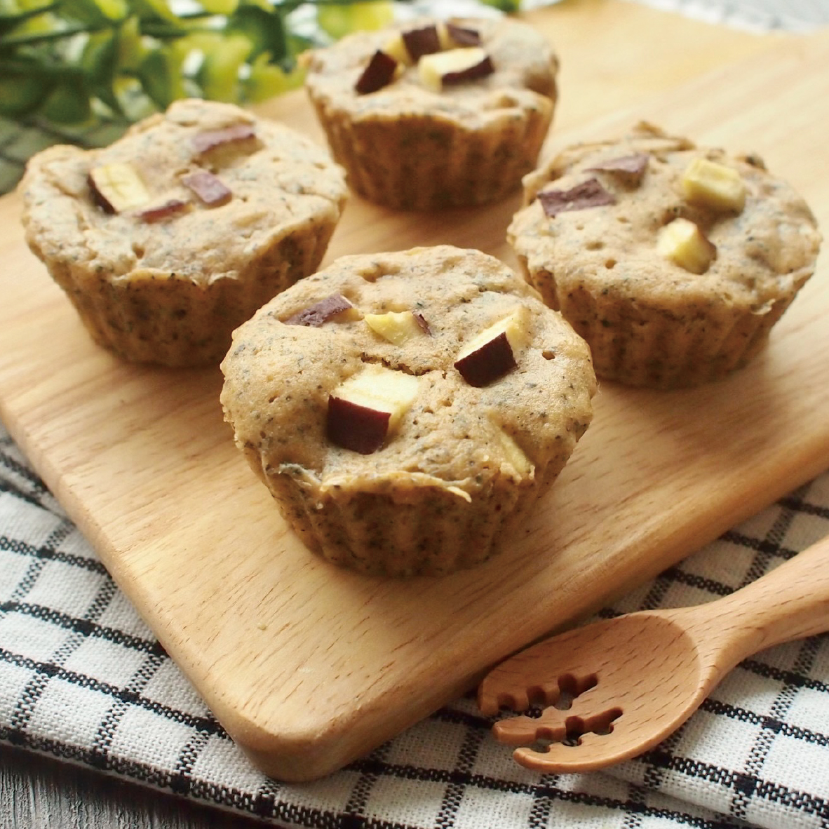 手づかみ食べ 電子レンジで簡単!甘くておいしい米粉りんご蒸しパン。