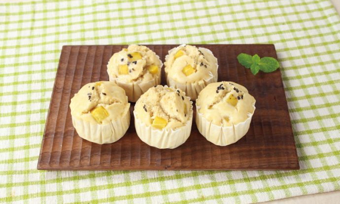 離乳完了期・幼児食 さつまいもと黒ごまの米粉蒸しパン。