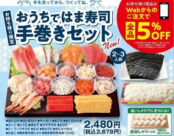 2021年ひな祭りは「おうちではま寿司手巻きセット」、まぐろ・いくら・サーモンなど人気ネタ15種食品産業新聞社ニュースWEB。