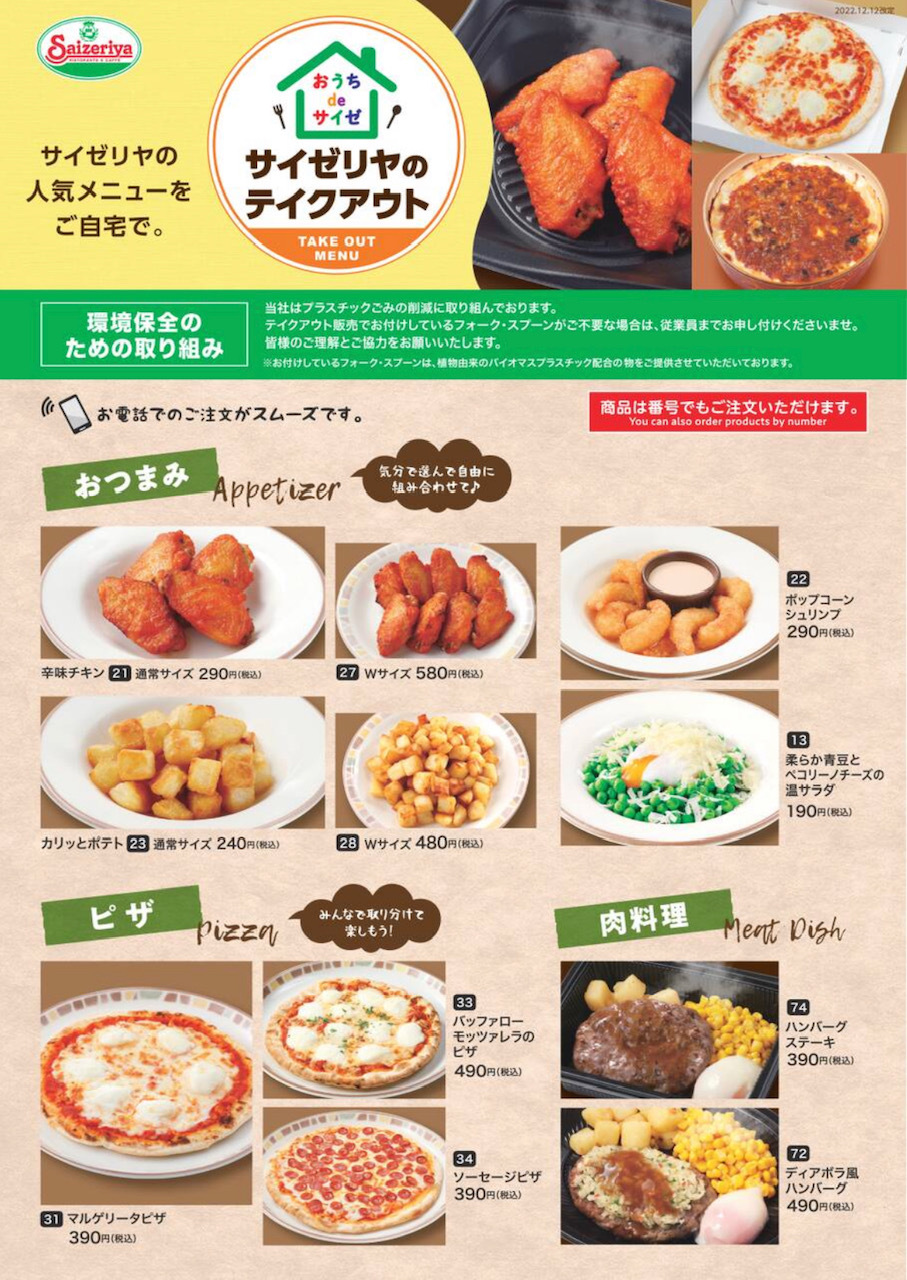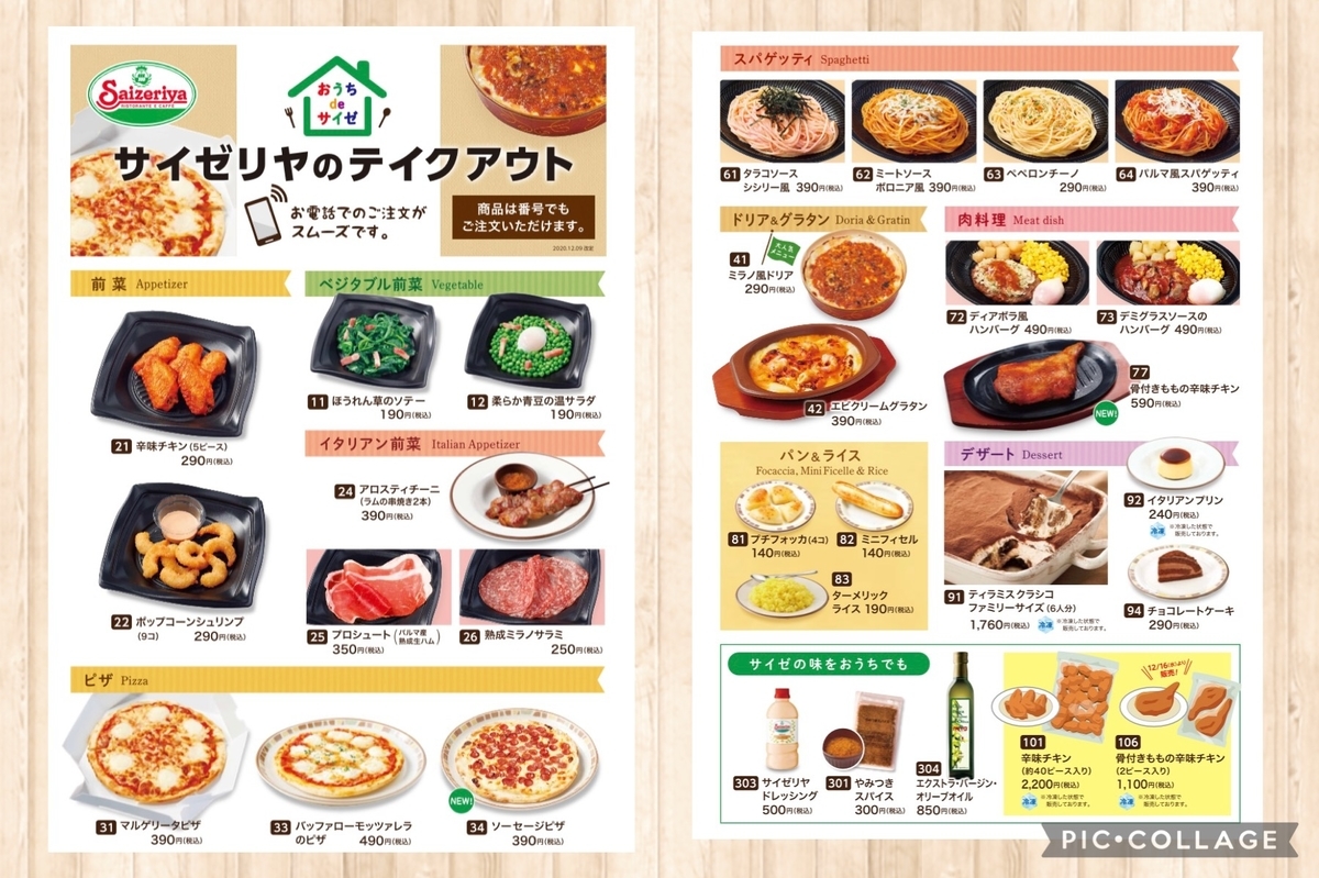 マキタニさん🇮🇹サイゼリヤはちゃんとおいしい on X: "サイゼリヤのテイクアウトメニューも新しくなって デカい辛味チキン「骨付きももの辛味チキン 」もテイクアウトできますよー! 冷凍もありますよー 2ピース新しいソーセージピザもテイクアウトになってるね https。