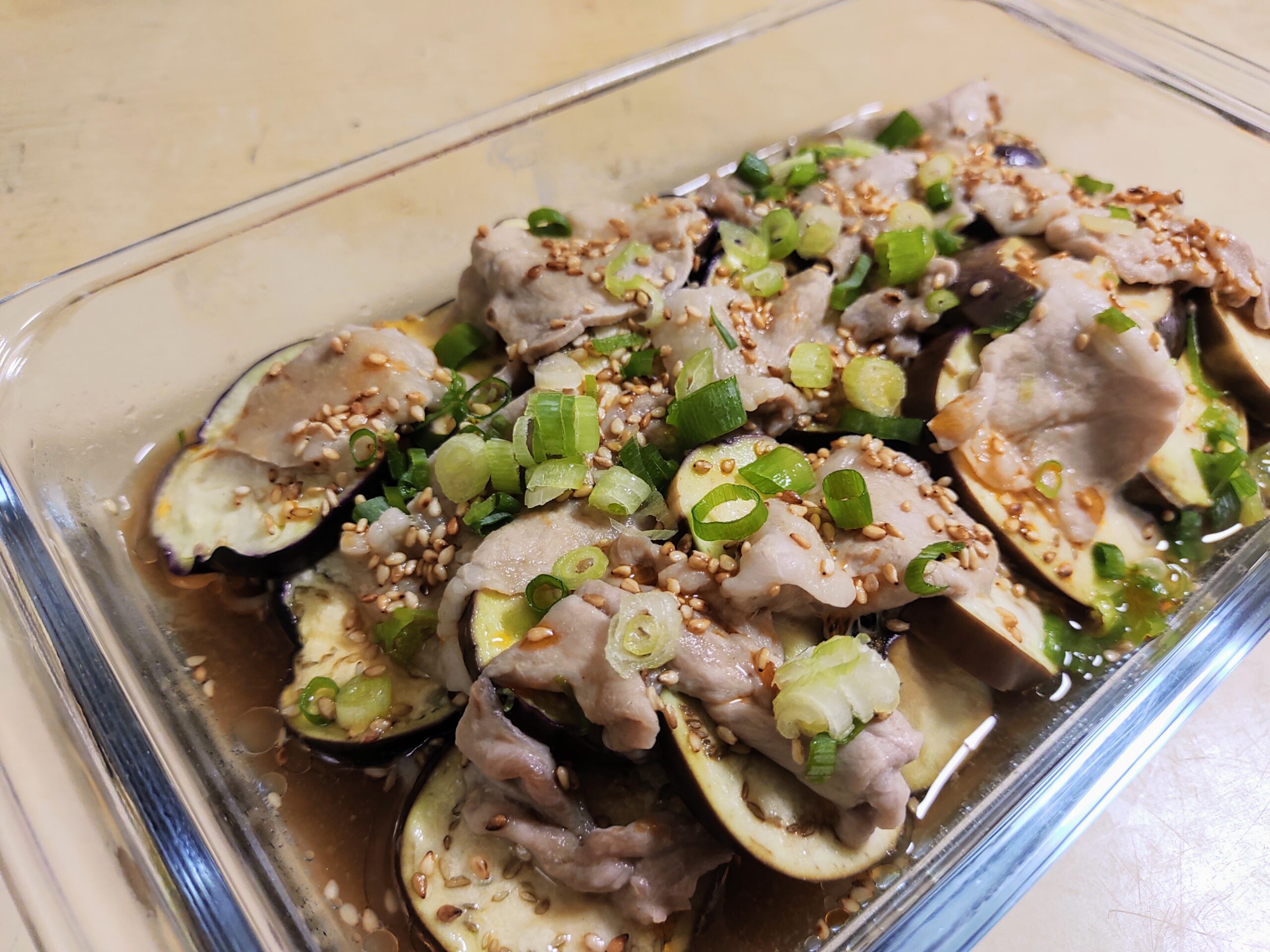 レンジで簡単 豚肉となすの重ね蒸し ピリ辛ポン酢だれ- おうちごはんを楽しむブログ。