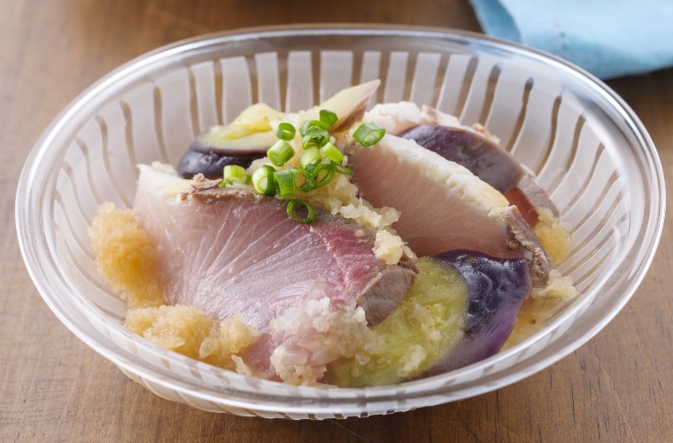 炙りオリーブハマチと蒸しなすのおろしポン酢和え「かがわの食」Happyプロジェクト。
