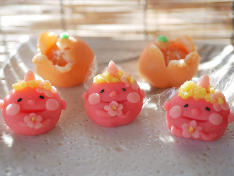 和菓子練り切りデザイン冬から春へ季節を分ける節分とバレンタインみかゆか和菓子日記。