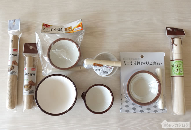 100均のすり鉢とすりこぎ商品一覧・サイズ。ダイソーとセリアで100円 ごますりに。