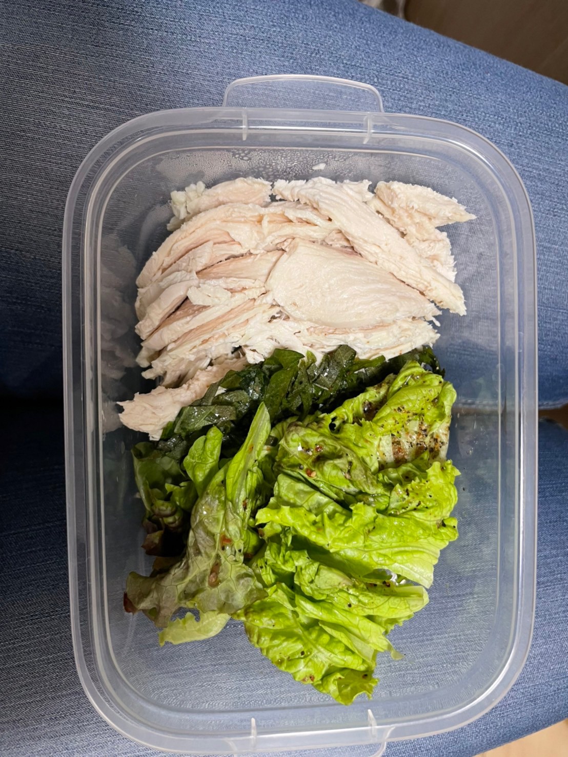 自前のボディメイク用のお弁当例 鶏ささみ、わかめのサラダ 福岡のパーソナルジム・ピラティスブログ「ダイエットは明日から」。