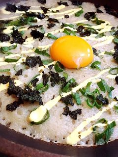 あべし on X: "鳥貴族の山芋鉄板焼きが好きすぎて再現レシピ作った✌️ 24cmフライパンで、長芋350gすりおろし→めんつゆ 大匙2顆粒だし小さじ1マヨ大さじ2と合わせよく混ぜ、ごま油を引いたフライパンに流して弱火で10分くらい焼き→マヨと刻み海苔と卵 本家はうずら。