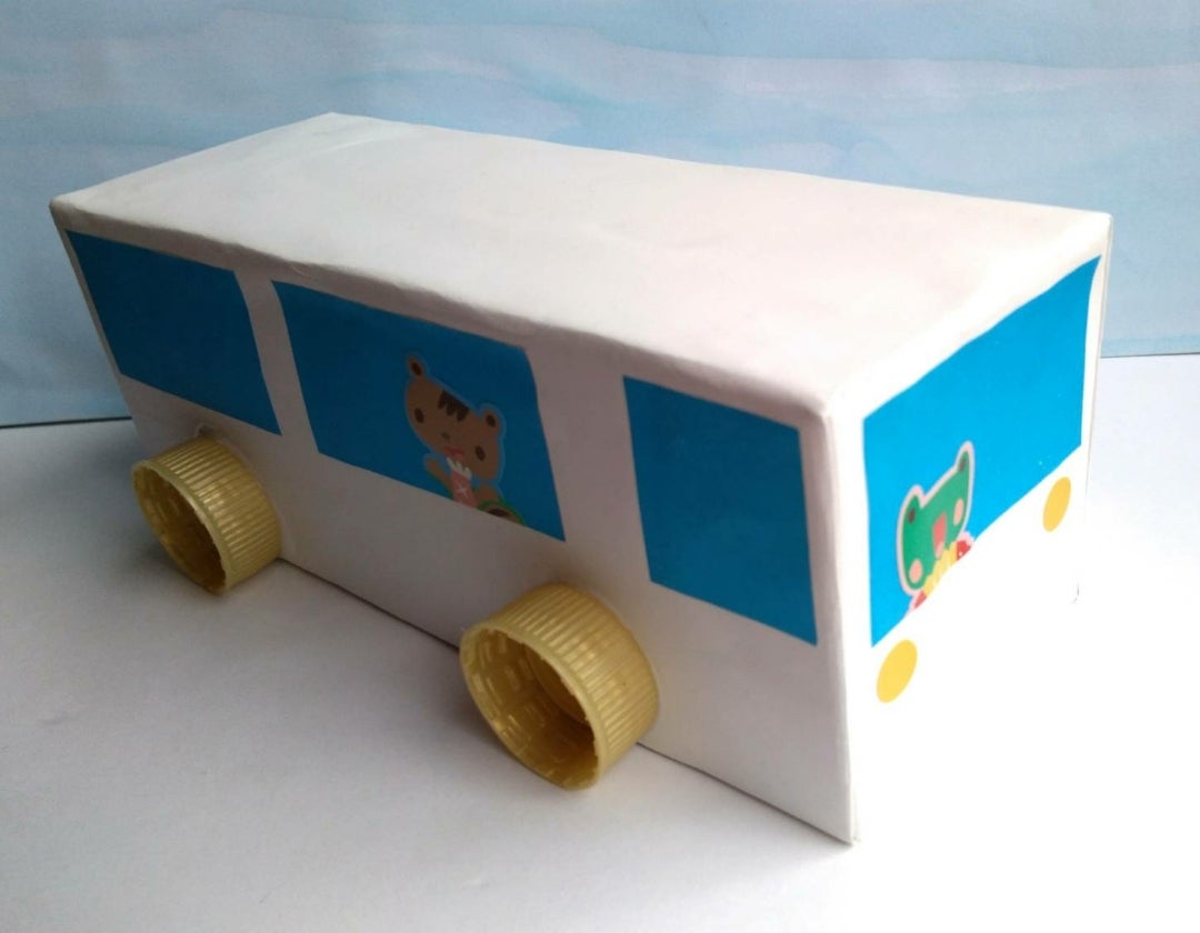 簡単工作「牛乳パックバス」おうちでも楽しめる子供の遊び方はにゃ!☆手作りおもちゃ箱☆ 牛乳パック等で簡単工作。