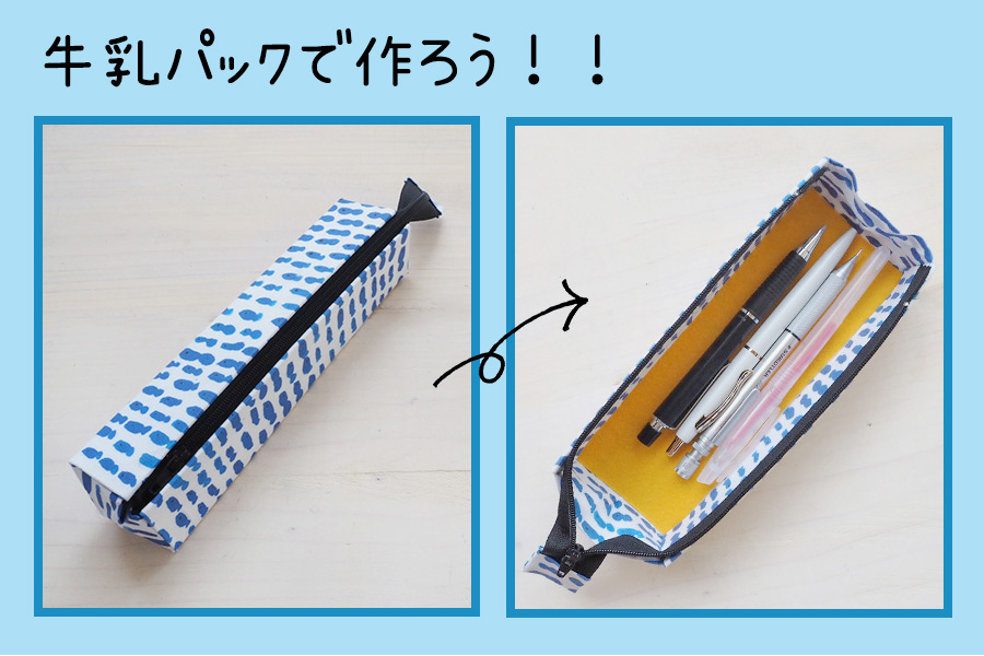 布工作 牛乳パックで作る、パカっと開くペンケース ※ミシン不要nunocoto fabric。