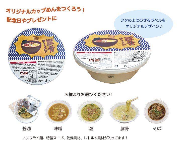 緑陽社 同人グッズ・オリジナルグッズ製作on X: "☆新商品☆ オリジナルカップ麺カップ麺好きの皆さまに!オリジナルパッケージのカップ麺はいかがですか?お味は 醤油・味噌・塩・豚骨 そば の5種類です♪ https:t.co 2VnOUVkZpQ https:t.co kmsOrlSIru"X。