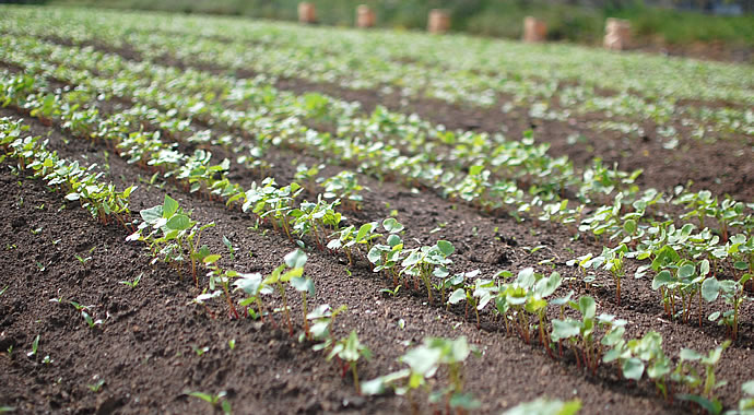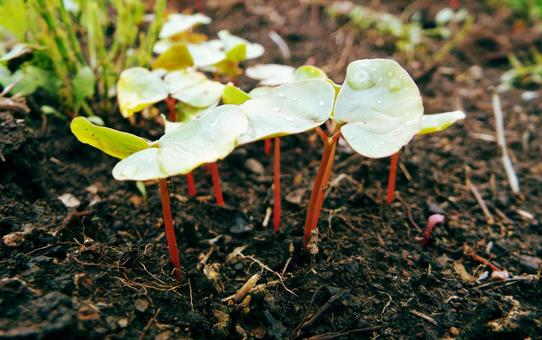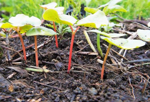 ソバの生長は凄く早く、播種後数日もすると発芽します。 - 増田そば製粉所。