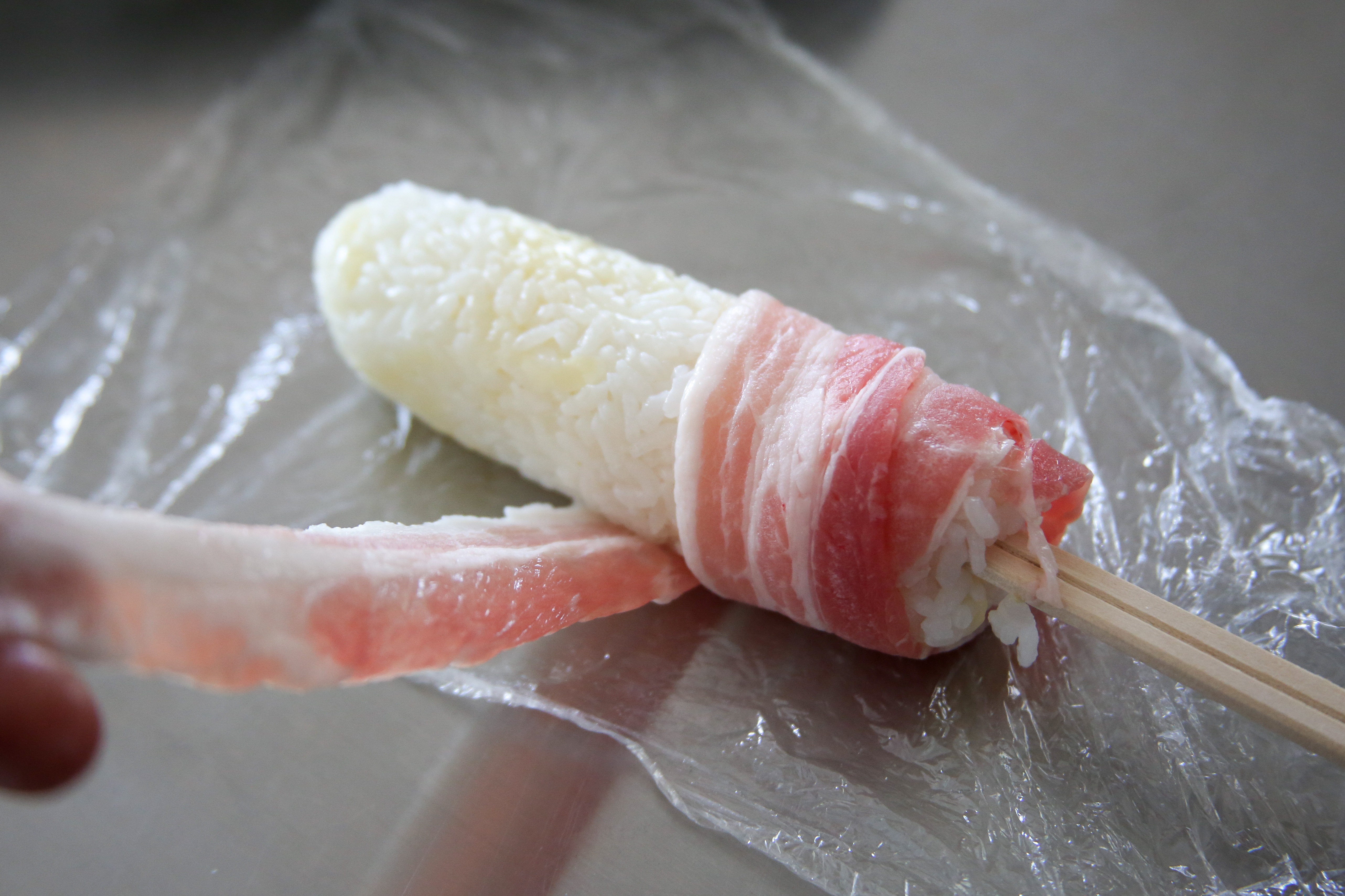 焼肉のたれで作るBBQ風ベーコン巻きおにぎり - 生き物豊かな田んぼのお米、宮城県大崎市・蕪栗米生産組合公式サイト。