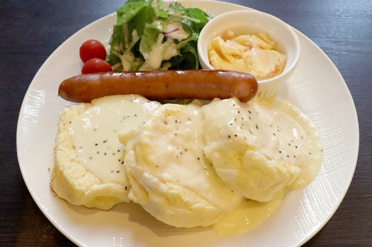 ツナ・ハム・チーズのホットケーキランチ。