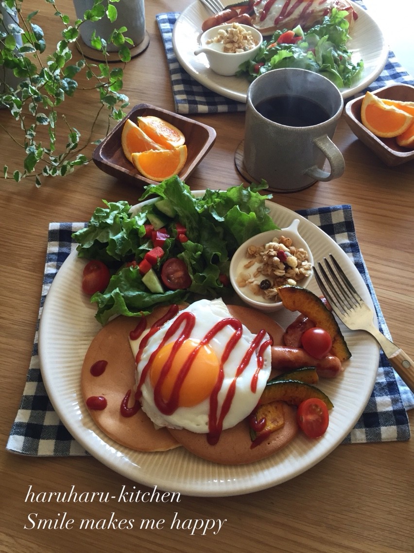 冷凍しておいたパンケーキでランチプレートしましてん : at my kitchen レシピブログ。