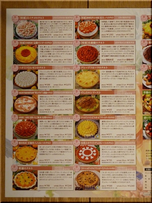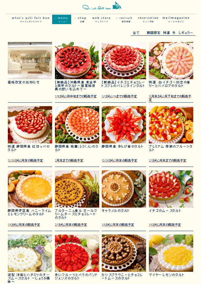 グランメゾン銀座メニューこだわりのタルト、ケーキのお店。 キルフェボン。