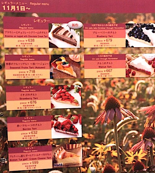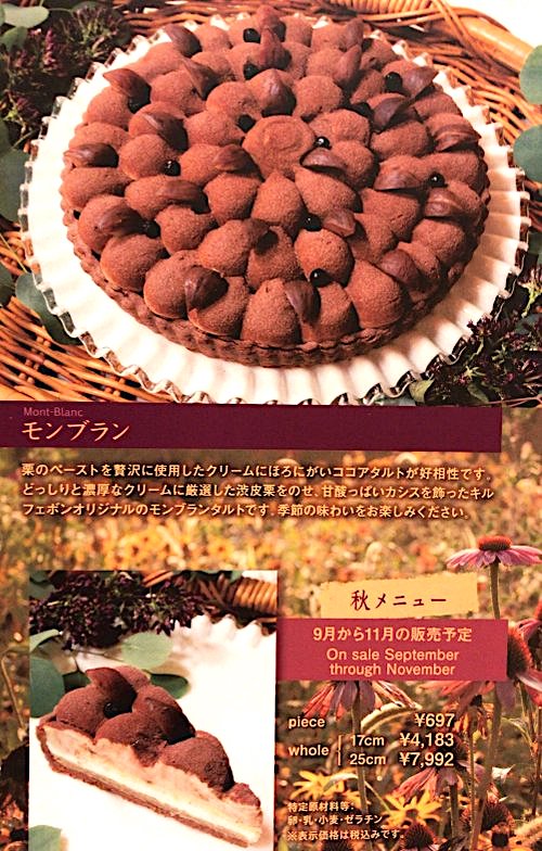 モンブラングランメゾン銀座メニューこだわりのタルト、ケーキのお店。 キルフェボン。