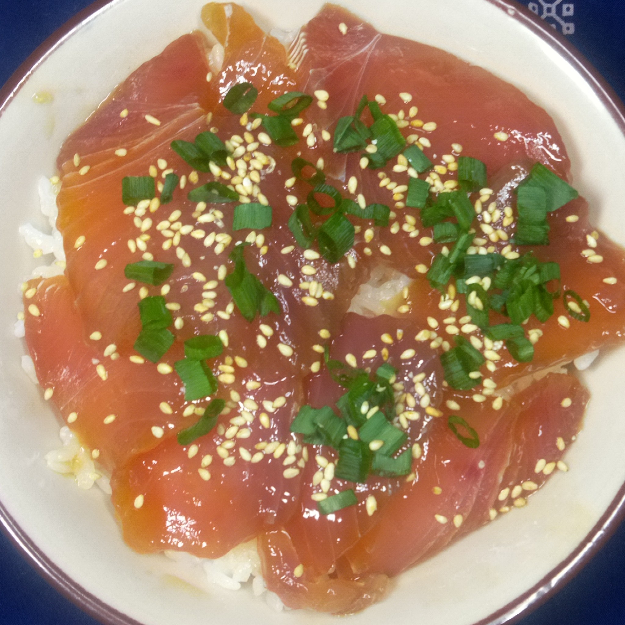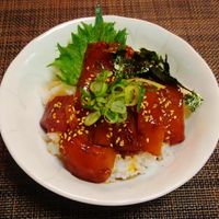ビンチョウマグロの漬け丼の作り方♪お安いマグロが絶品に!タレに漬けてすぐ食べられます。