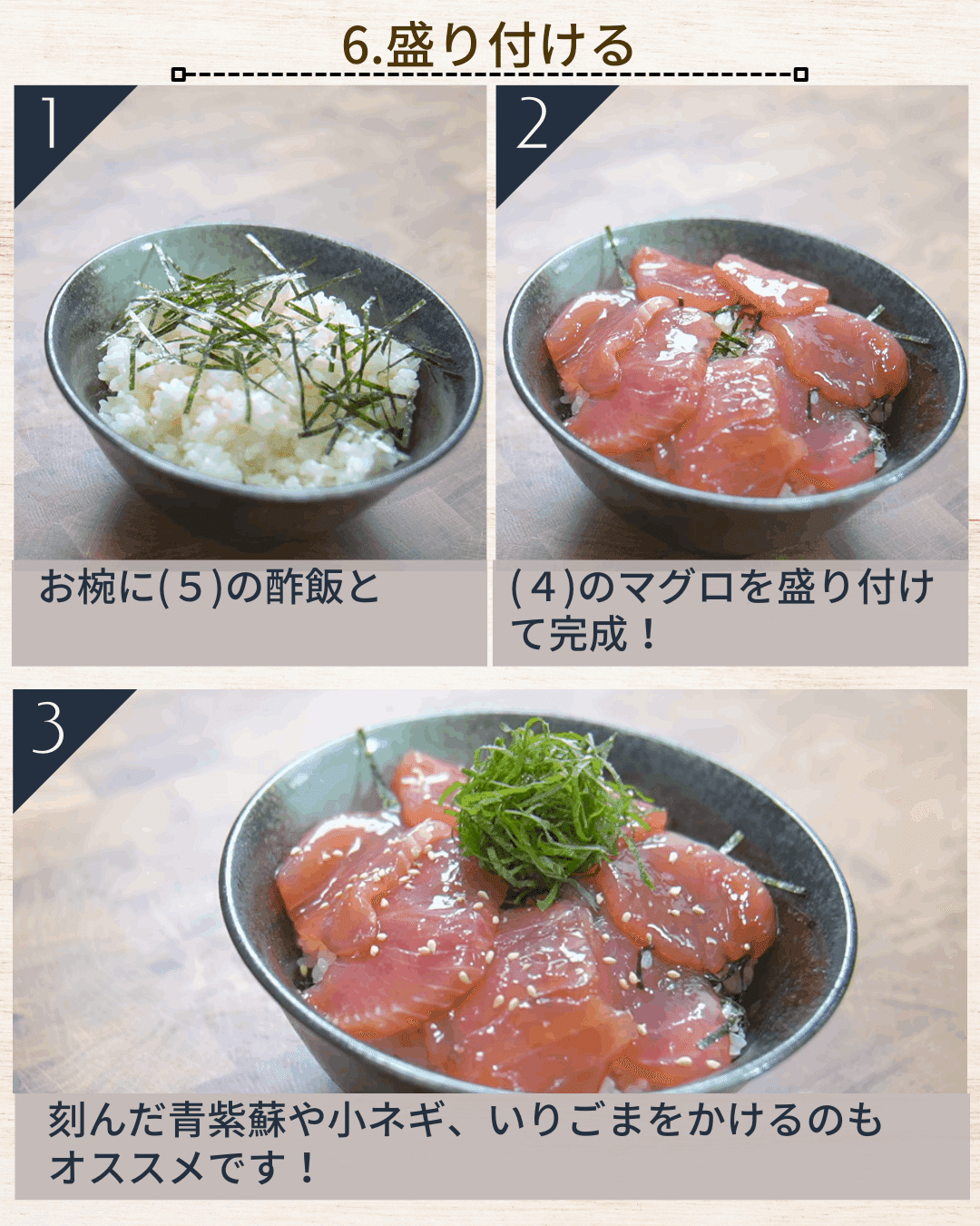 まぐろの漬け丼のレシピ 作り方:白ごはん.com。