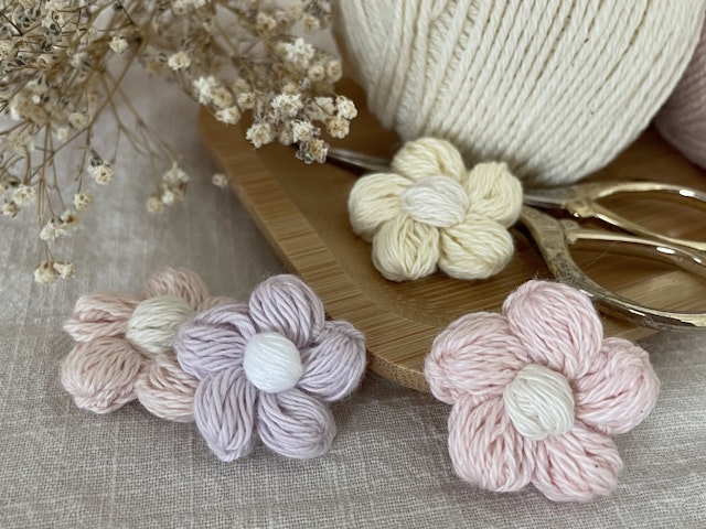 ぷっくりお花のモチーフのかぎ針編みおすすめの編み図10選手編みのお店 hus: フース編み物コラムにて編み図・手芸・毛糸の情報配信。