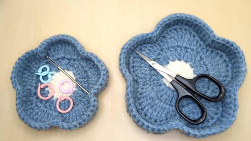 かぎ針編み お花モチーフの小物入れの編み方 編み図・動画つきちいさな桜.com。