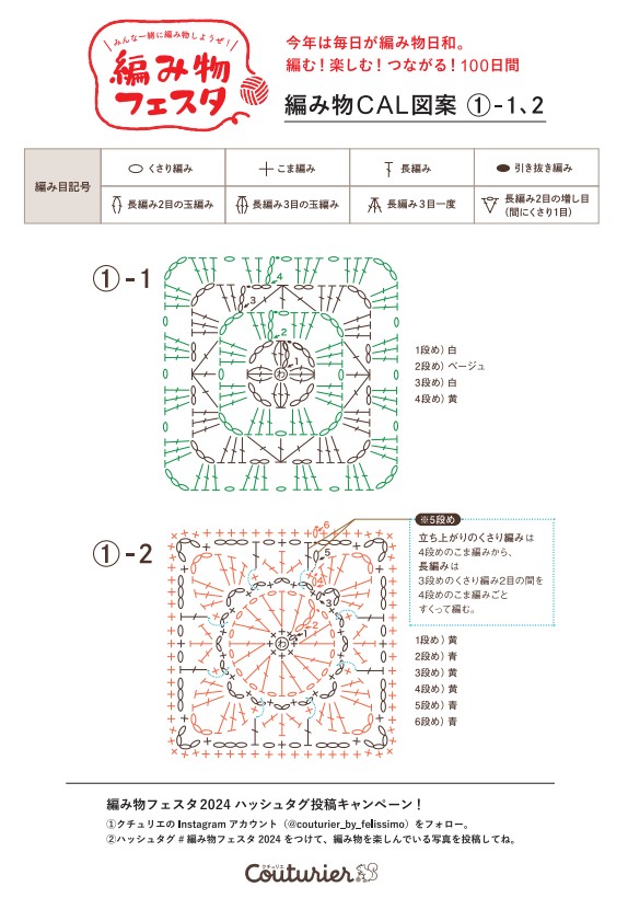 無料☆かぎ針編み図 四角のモチーフ編みデザインをダウンロード:図案① - クチュリエブログ。