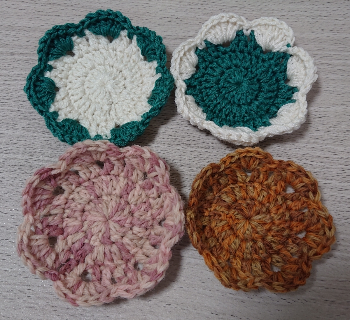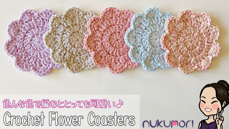 初心者さん向け 簡単お花のコースターの編み方 100均毛糸かぎ編み- おばちゃんでもできる。