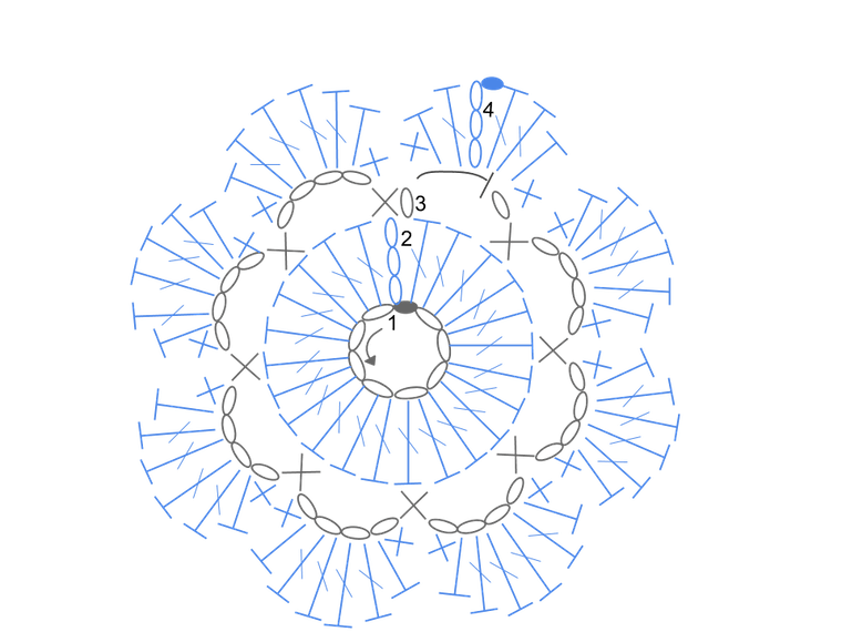 花のモチーフの無料編み図:かぎ針編み初心者のためのかぎ針編み入門サイト『かぎ編みをはじめよう』。